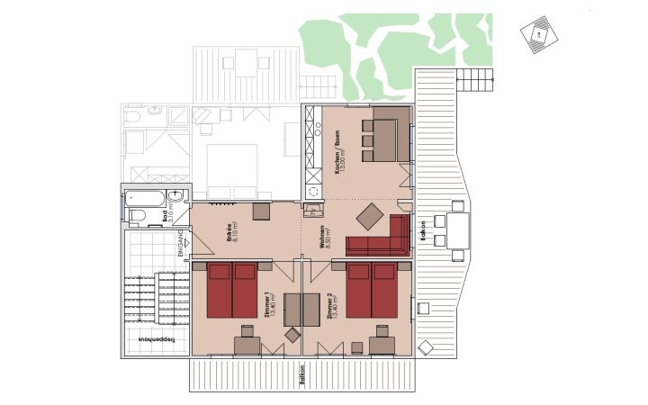 On the 1st wooden floor mini (object no. 1229) 60m² for 4 - 6 persons