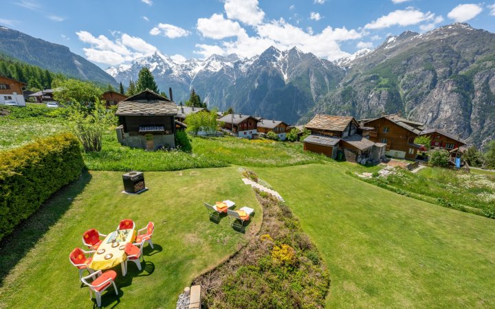 - Lawn for general use with wooden bench set, garden furniture and barbecue area for communal use in front of the two holiday homes