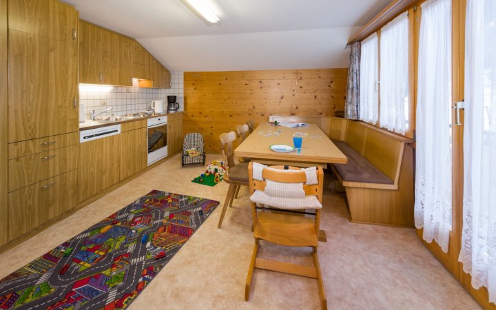 - Large, fully equipped open kitchen-living room with corner bench, extendable dining table/3 chairs, kitchenette with 4 electric hobs, stram extractor, dishwasher, fridge/standard freezer compartment, oven, filter coffee machine, kettle, fondue set, hoover and other details